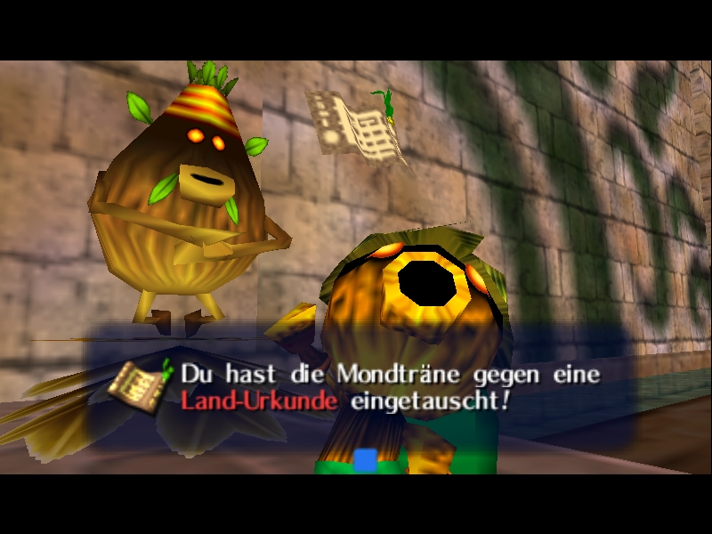 Okarina mit einer Dekublase aus den Händen! Beim Einsammeln der Okarina kehrt die Erinnerung an