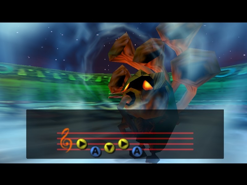 Zwar ist er ziemlich sauer, dass Du ohne Majoras Maske gekommen bist, aber er setzt sein Vertrauen in Dich, dass Du es doch noch schaffen wirst!