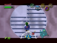 entzünden. Der große Leuchter an der Decke beginnt sich daraufhin in der Wärme zu drehen. Mit Anlauf und viel Schwung kannst Du die einzelnen Krüge durch eine Goronenrolle über