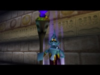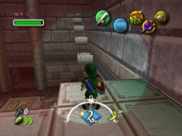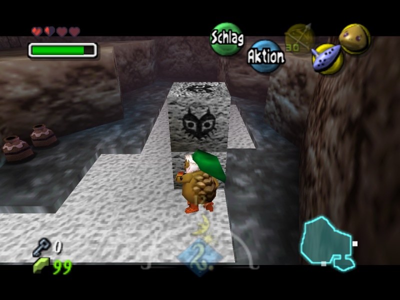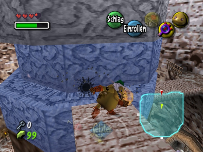 und B drücken) lässt zwei weitere Sockel ausfahren - einen vor dem Ausgang und einen hohen Goldenen Sockel im Graben. Als normaler Link kannst Du nun auf die andere Seite des Grabens