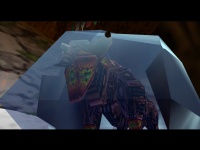 blauen Scheiben wegschlagen, die Spitze der Säule überqueren und die Schneekugeln aus dem Weg räumen. Wenn Du nun auf die Mastertür zurollst, findest Du auf der anderen Seite eine