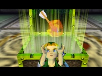 eine Truhe mit einer kleinen Fee (7). Jetzt nur noch die drei Fackeln entzünden und die Tür öffnet sich. Dahinter stehst Du hinter Gittern in der Haupthalle. Ein Goronenstampfer auf den